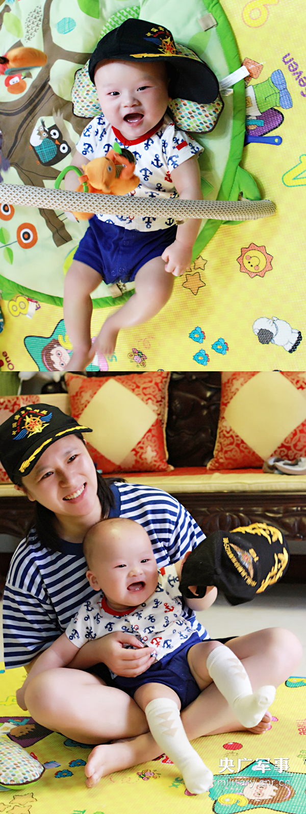 荆州舰教导员陆凯,给宝宝拍照必须全副武装:舰帽、带锚T恤、深蓝裤衩,满满深蓝风。看他给宝宝买的玩具:航母模型、武装直升机、两栖步战车,陆海空俱全,明显是计划子承父业。
