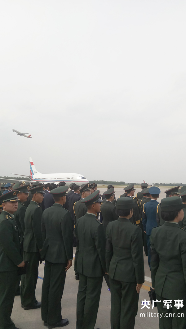 搭载中国维和士兵申亮亮遗体灵柩的中国专机抵达长春。陈欣 摄
