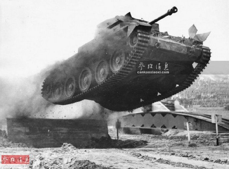 二战英军“克伦威尔”巡洋坦克进行高速越障演示。