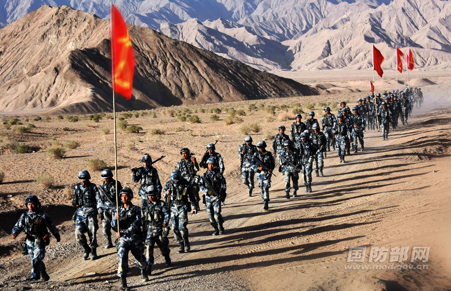 近日,空降兵某团以检验部队真打实备能力为目的,组织千余名官兵在漠北昆仑山深处开展了一次跨昼夜战术综合演练。(贾光辉 雷雨 张蜿根摄影报道)