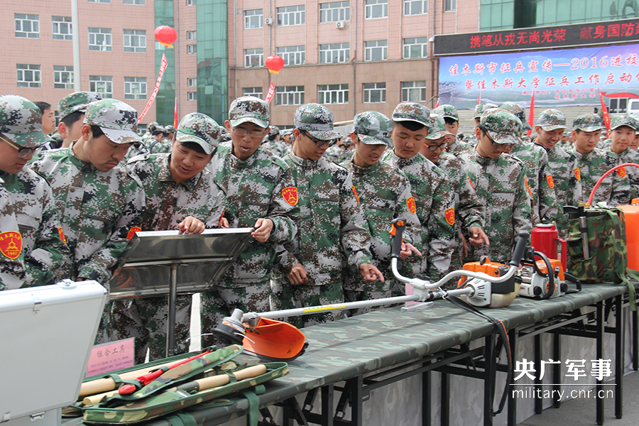 央广网佳木斯5月17日消息 (韩彦军) 真正男儿来当兵,挥洒青春进军营。近日,为增强征兵宣传感染力,感召更多莘莘学子携笔从戎,建功军营。佳木斯市军分区创新征兵方式,将火热的军营搬进佳木斯市大学,武警佳木斯市森林支队官兵应邀参加,并结合自身实际,向大学生展演了现代化各类“灭火利剑”神器和讲解了应征入伍优惠政策,点燃了大学生们参军入伍的热情。