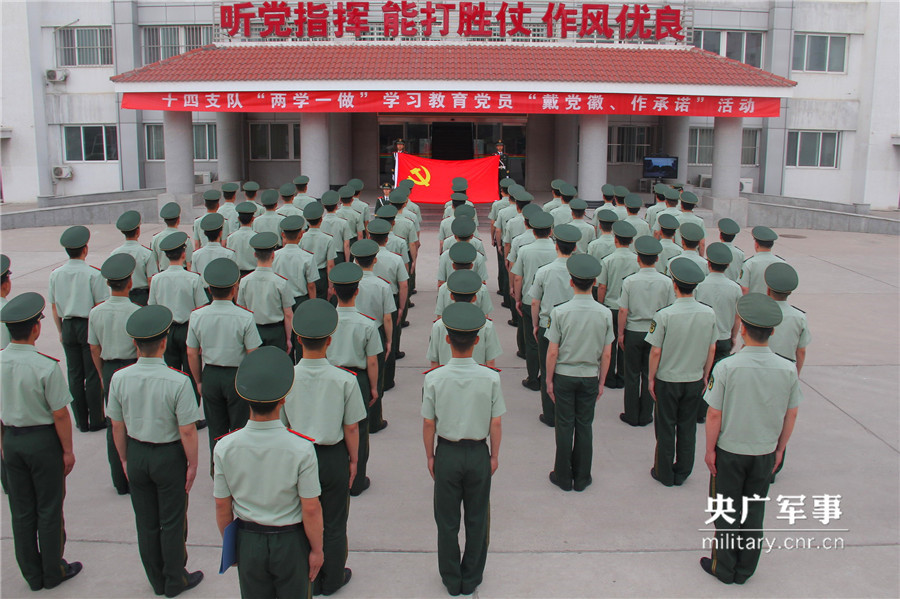 央广网北京5月26日消息(邢士飞 赵明)为有序推进“两学一做”学习教育,确保活动扎实开展,5月25日,武警北京十四支队组织开展“戴党徽、作承诺、当表率”活动,支队党委常委带头承诺,各层次代表踊跃发言、争当表率,进一步强化了全体党员党的意识、党员意识、党章意识,凝聚了官兵士气,鼓舞了工作热情。