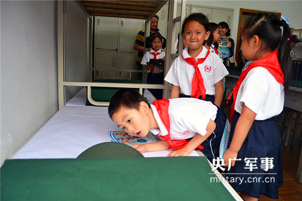 走到警营宿舍,在看到武警官兵们整齐有序的床铺及生活用品时,孩子们对官兵们肃然起敬。随后,现场官兵为同学们讲解和演示了叠被子的方法步骤,只见他们三下五除二,一块“豆腐”就出炉了。孩子们一阵欢呼,表示自己也要向武警官兵们学习,养成良好的生活习惯。