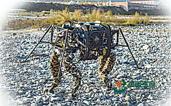 第一个出场的就是奔跑1号机械狗。穿上迷彩裤的中国机械狗首先参加的是单项比赛,主要检验负重能力、机动速度和机动灵敏性。几十公斤重包袱挂上后,机械狗纹丝不动;在河滩上行走,它像马帮驮队一样,虽然缓慢但十分平稳;前行、后退、侧走,机械狗的四条腿密切配合、稳定可靠。