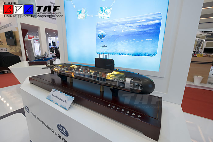 在2017年的兰卡威国际海事与航空航天展上,中国展出了S26T外贸常规动力潜艇,泰国总理巴育·占奥差3月21日在曼谷声明,中国向泰国提议“以两艘潜艇的价格购入三艘潜艇”。巴育·占奥差在内阁会议后对记者进行演说,并声明,关于购入潜艇的问题将被提交到内阁会议,他已经准备好批准马上购买两艘潜艇的计划,而泰国计划购买的就是这款潜艇。