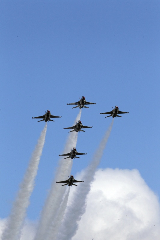 当日,一年一度的美国休斯敦航空展在埃灵顿空军基地开幕,美国空军“雷鸟”飞行表演队压轴亮相。