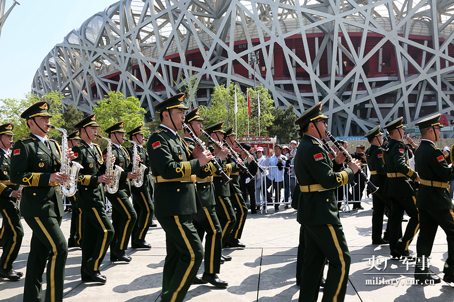 中国人民解放军军乐团进行巡游表演。杨宸琇 摄