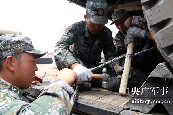 这可难倒一批英雄好汉,事已至此,只能硬着头皮往上顶了。技师带领驾驶员们拿出教材开始现学现卖,集智攻关,断掉履带板,扒出负重轮、寻找故障原因……原来,负重轮内的油封由于老化,导致漏油,从而造成平衡轴缺油,各类轴承出现干摩擦,找到故障原因后,大家寻找随车器材,开始维修更换,经过两天的修理,坦克终于恢复了最初的战技术性能,经过这次挫折,也让大家深深明白驾驶过程中观察路面的重要性,现在看着进退自如的战车,大家脸上露出了欣喜的笑容,内心涌出满满的成就感。