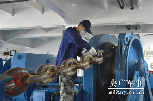 8月14日,远望7号船以洁白的身躯、威武的雄姿再次扬帆起航,而远望水手的故事发生在出航前夕。受海水侵蚀的影响,船体往往容易生锈,如果不及时处理,锈迹便会无限蔓延,不仅影响船体美观,更影响到船舶使用性能。船体保养是远望水手们日常工作中的一项重要内容。为确保在远望7号船出航前及时清除船体所有锈迹,外舷走廊、上甲板、飞行甲板等地方,总能看到他们身着工作服,仔细寻找锈迹的身影。不管锈迹隐藏在哪个不起眼的角落,都逃不过他们的火眼金睛。