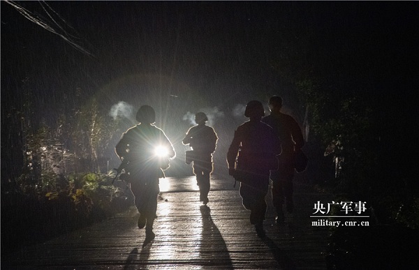 川渝腹地夜晚阴雨绵绵,夜间渗透、观察报知、武装奔袭轮番上阵,小队连贯作业进入白热化阶段,20公里的行军路线上,裁判员设置重重“障碍”,队员不仅要面临体能的急剧消耗,还要在保证隐蔽情况下快速运动,这样高强度、高难度的训练课目,对特战队员体能、技能提出了不小挑战。