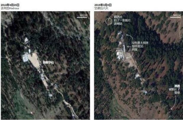 2019年2月26日,印度空军战机空袭巴控克什米尔地区。空袭前后卫星照片对比。资料图来源:中华网