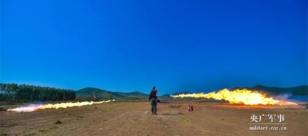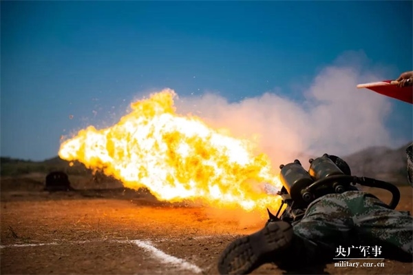 央广网7月3日消息(詹丽红 郭龙佼 彭亚涛 白栋)“正前方50米处,发现敌暗堡火力点一处。”“收到,火力组前出,掩护喷火组抢占有利位置对敌实施歼灭!”随着指挥员的一道命令,第79集团军某合成旅防化喷火兵林清新身姿腾转挪移,迅速抢占有利位置,卧倒出枪、人枪合一、憋气挺腰,瞄准、击发一气呵成,敌火力点瞬间一片火海。