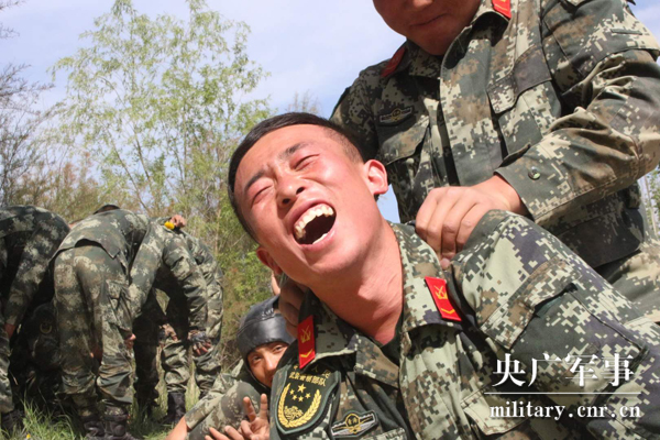 训练结束,战友之间互相放松身体,酸痛的肌肉在战友的“按摩”下,真真是痛并快乐着。