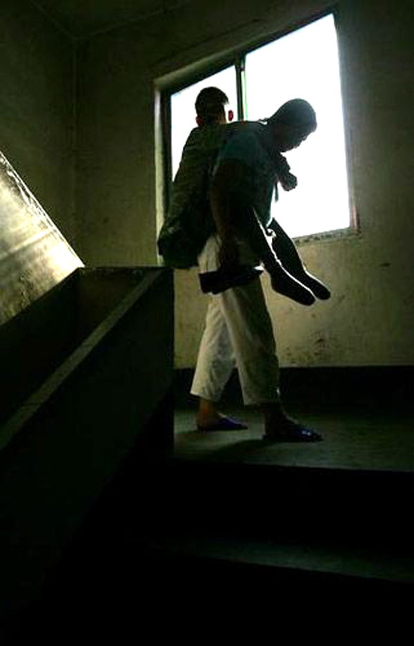 当初住在镇上时,史喜芬每天这样背着秦华上楼下楼