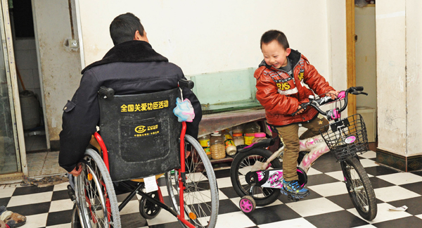 转眼间,到了儿子上小学的年龄,为了更好地把孩子培养成才,秦华把孩子送到了县城的学校。由于残疾人租房不方便,2015年年初,夫妻俩在亲戚和战友的帮助下,下狠心在县城按揭购买了一套90多平米的小区房。办理按揭时,秦华考虑到自己身体不好,只办理了10年的按揭贷款,他说,宁愿他在时省吃俭用抓紧还贷,也不要在将来自己一旦提前走了,给娘俩留下债务。