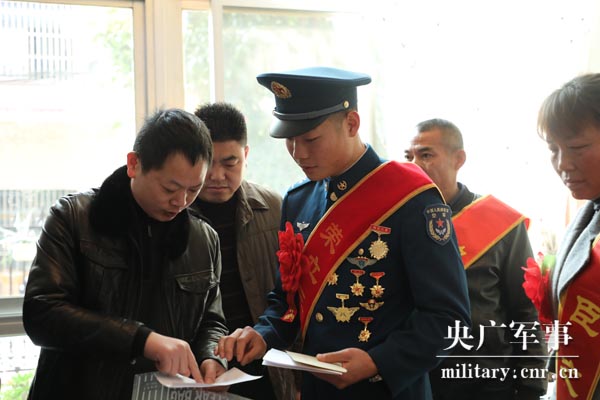 “喜报送家门”活动温暖家属,激励了官兵。黄飞虎父亲说:“这是这么些年,最好的年货。”下士赵凯说:“荣光背后都是汗水,我要用自己的实际行动加油干,让父母为我骄傲和自豪。”