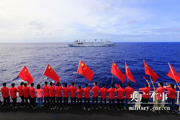 远望3号船与远望7号船载返航途中相遇。周云东摄