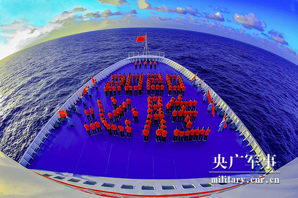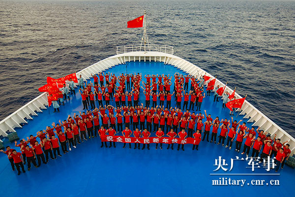 远望7号船在太平洋上祝福全国人民新春快乐。韩帅摄