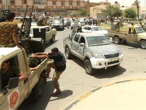 6月4日,利比亚民族团结政府军驾车驶入的黎波里南部地区(新华社发,哈姆扎·图尔基亚摄)