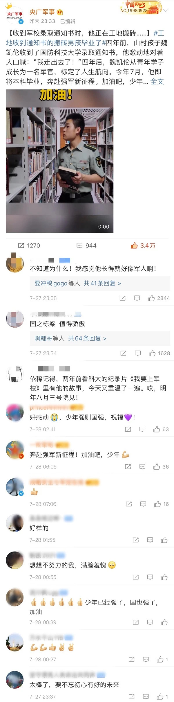“我考上了军校,而且还是最好的!”
