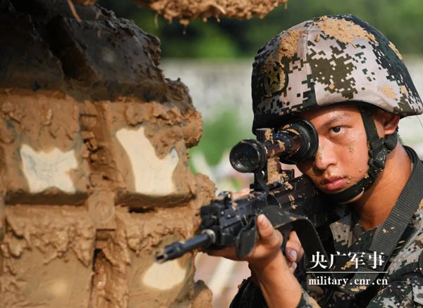 暴雨高温环境下,狙击手下车投入战斗。张永进 摄