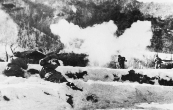 中国人民志愿军战士在零下30摄氏度的阵地上打击敌人
