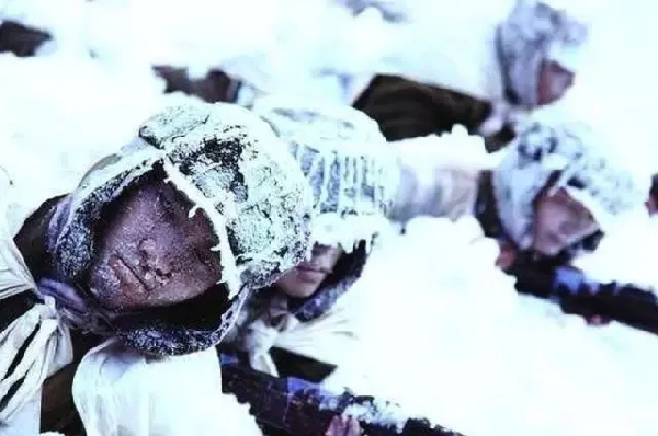 就这样,在滴水成冰的酷寒中,志愿军官兵们忍受着极度的饥饿和疲惫,翻山越岭,连续奔袭10余天,终于悄无声息地进入到预先埋伏位置。1950年11月27日,长津湖地区突降大雪,躲在帐篷中取暖的美军万万没有想到,下午4点30分,让他们终生难忘的长津湖战役在漫天飞雪中正式打响了。