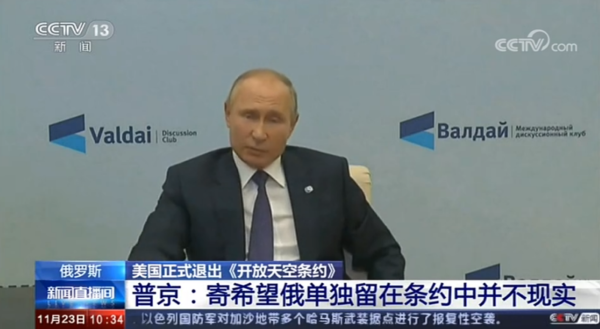 资料图:美国正式退出《开放天空条约》,俄罗斯总统普京作出回应