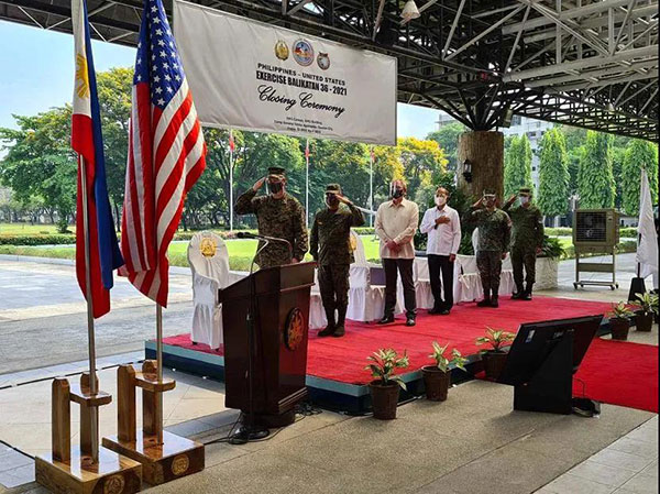 当地时间4月23日上午,菲律宾和美国举行的第36届“肩并肩”联合军事演习在菲律宾武装部队总部阿奎纳尔多军营闭幕(图源:菲律宾军方)