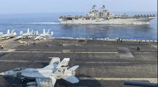 “罗斯福”号航母和“马金岛”号两栖攻击舰(图源:美国海军)