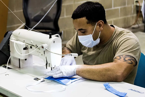 4月2日,该部队生产的第一批300个医用口罩已经送到了马迪根陆军医疗中心。