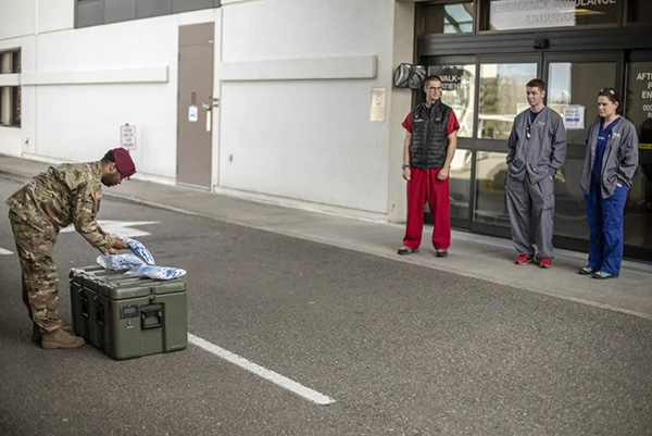 美国陆军第一特种部队支援营将口罩送到军队医疗中心