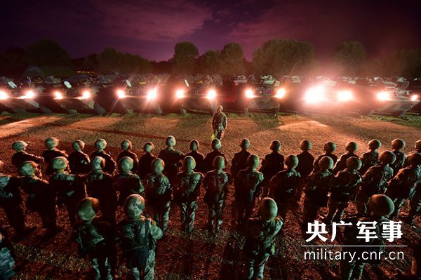 三连坚持从难从严从实战出发摔打磨练官兵打赢能力。图为连队在夜间组织登车训练。