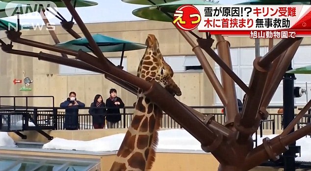【环球网综合报道】据英国《每日邮报》3月15 日报道,近日,日本一家动物园内的一只长颈鹿不慎将脖子卡在树枝之间,动弹不得,饲养员发现后前去帮忙,最后不得不将假树枝拆除方才“解救”了它。