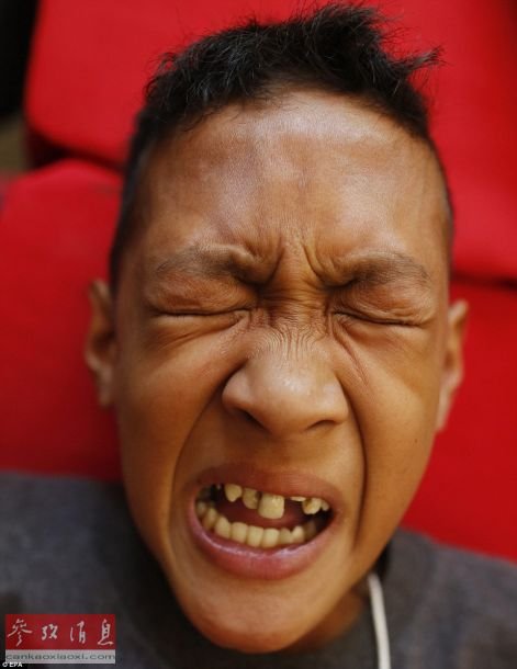 据英国《每日邮报》4月20日报道称,菲律宾首都马尼拉东部一所学校里,学生名进行集体割礼。图为一名学生咬着牙进行割礼手术。