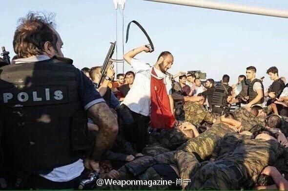 土耳其部分军官7月15日企图发动军事政变。土耳其总统府16日发声明称“一小撮士兵”的政变图谋没有成功。据悉,部分政变军人投降后遭遇民众暴打,甚至多人被愤怒的民众活活打死,而警方也未能有效控制局势。图为博斯普鲁斯大桥上,投降的叛军被愤怒的民众暴打。