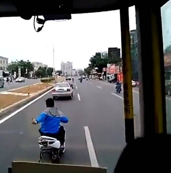 2016年3月1日报道,广东汕头,几个青少年驾驶摩托车,在马路上“表演”各种“杂技”,甚至还多次将正常行驶的公交车逼停。