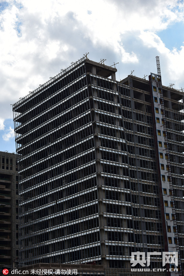 2016年3月1日,昆明一在建楼盘造型奇特,看似将要倾倒,独特的外形很具视觉冲击力。李明/东方IC