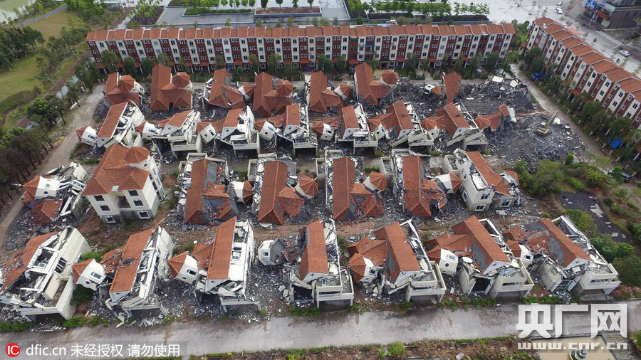 2016年3月24日,广东河源,开发商强行拆除上百栋豪华别墅。24日记者在广东河源客家公园旁一个高档公园里小区(又称岭南花园)看到,多位业主与现场拆除施工方发生口角,争吵较大。争吵现场触动交警与派出所,通过派出所民警的劝阻,现场没有发生强烈的打斗事件。多位业主冒雨或打着雨伞在小区门口维权。门口停放着几辆小车,小区里面几台挖机现场施工。
