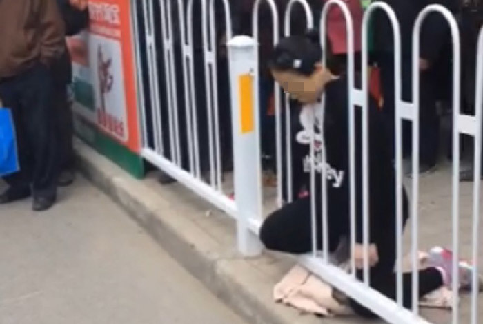 2016年3月29日,陕西榆林,米脂富泰百货对面,一孕妇头晕准备扶栏杆休息,不慎头被卡住,在救护人员赶到现场前,女子已经窒息身亡。