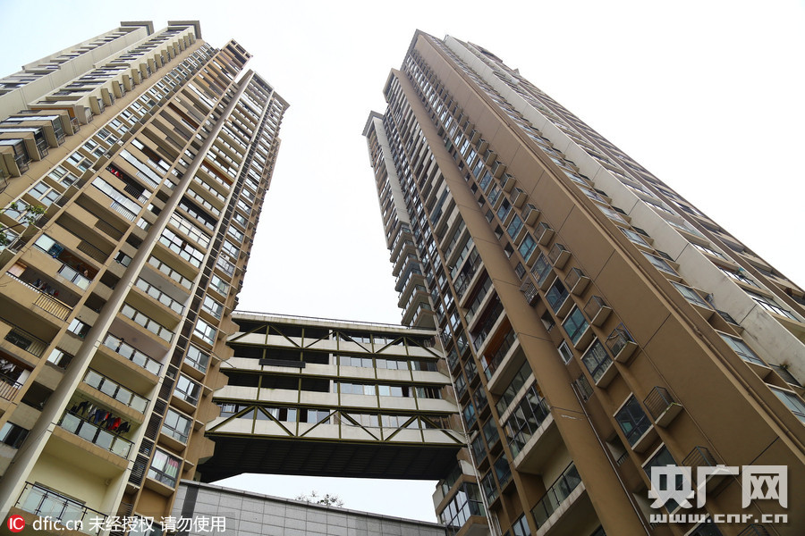 2016年3月31日,重庆,重庆一楼盘,连接两栋住宅楼的走廊部分被业主改建成了房屋。据悉,房屋位于高层住宅楼的第8-11层,以钢材为框架,中间被一分为二,其中五家已经将玻璃窗户安装。
