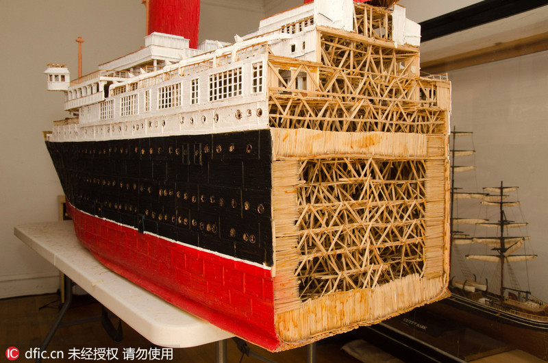 2016年4月1日报道(具体拍摄日期不详),Wayne Kusy耗费了两年半的时间,用27万根牙签制作出了SS America游轮的复制品。这名来自美国芝加哥的55岁轮船迷从十岁就开始使用牙签“造船”,到现在已经完工了7艘,其中包括泰坦尼克号、卡蒂萨克号以及皇后玛丽号。而他的下一个作品将会是1929年的SS Bremen号游轮。