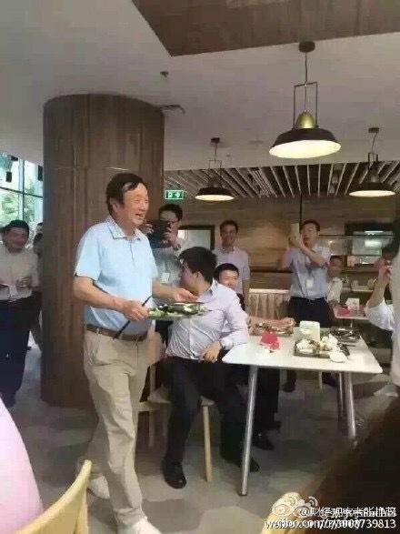 72岁的华为创始人任正非最近很红。继年初被曝光独自乘坐机场摆渡车,再被曝出独自在上海虹桥机场排队等出租车,瞬间刷爆微信朋友圈。日前,又有网友曝光出,任正非和华为普通员工一样,在华为食堂中排队吃饭,领到餐后,任正非又一个人端着盘子去吃饭。