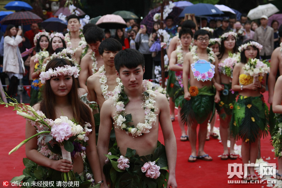2016年4月24日,第二届宋城裸婚日,20对90后情侣在杭州宋城景区举行了一场特殊的婚礼:他们不要房子,不要车子,鲜花为衣,绿草为裙,在宋城景区的爱情隧道里深情拥吻,宣誓裸婚。