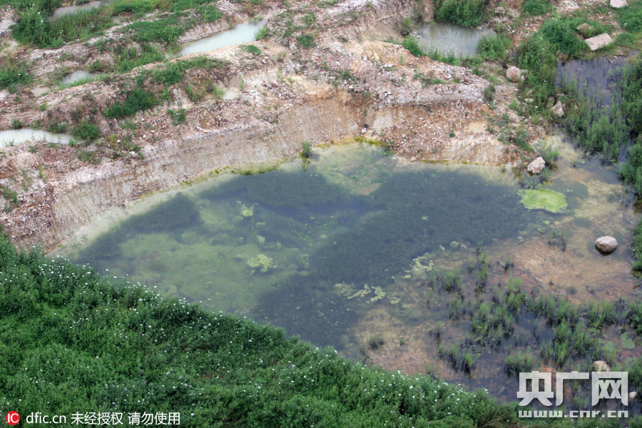 2016年4月25日,武汉赫山,原武汉农药厂地块。该地块地势呈现“凹槽”状,中间有很大一块积水。地块上长满野草,生命状态正常。武汉赫山地块曾经是武汉市农药厂旧址,土壤受污染严重,故而被称为“毒地”。