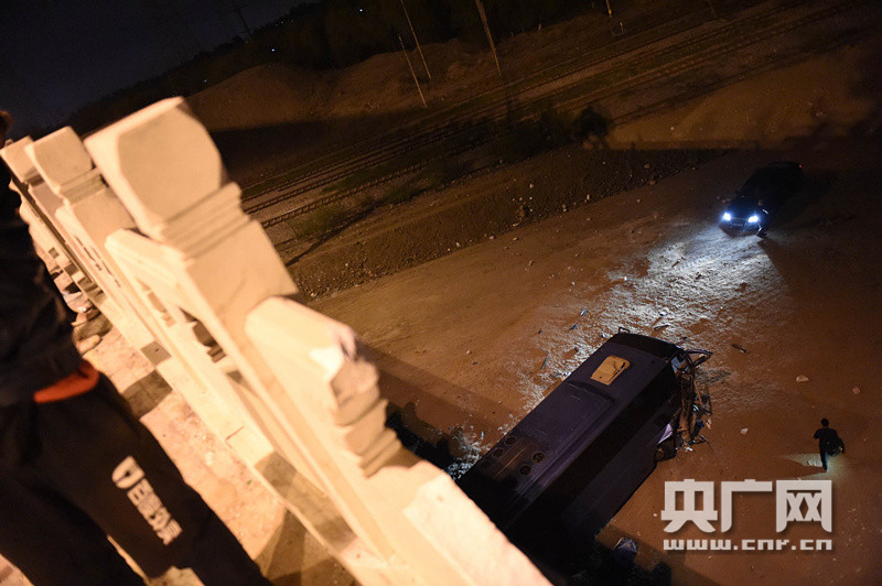 2016年4月26日下午7时,北京市通州区六环附近,一辆金龙大客车冲破护栏,直接掉到桥下。