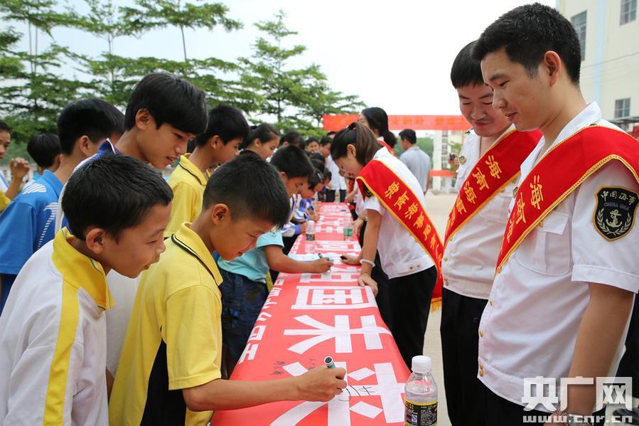 央广网海口5月5日消息(记者朱永 通讯员欧阳斐斐 于宁) 5月4日,海南海事局团委组织海事青年志愿者,走进白沙县细水乡中心学校,为海南海事局定点扶贫点的小学生上了一堂生动而实用的水上安全主题课,传授水上安全知识和水上救生技能,旨在强化小学生水上安全意识,提高水上自救能力。10余名海事志愿者和细水乡中心学校的40余名师生参加了活动。