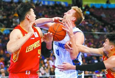 汉密尔顿(中)或将离开首钢男篮。本报记者 刘平摄