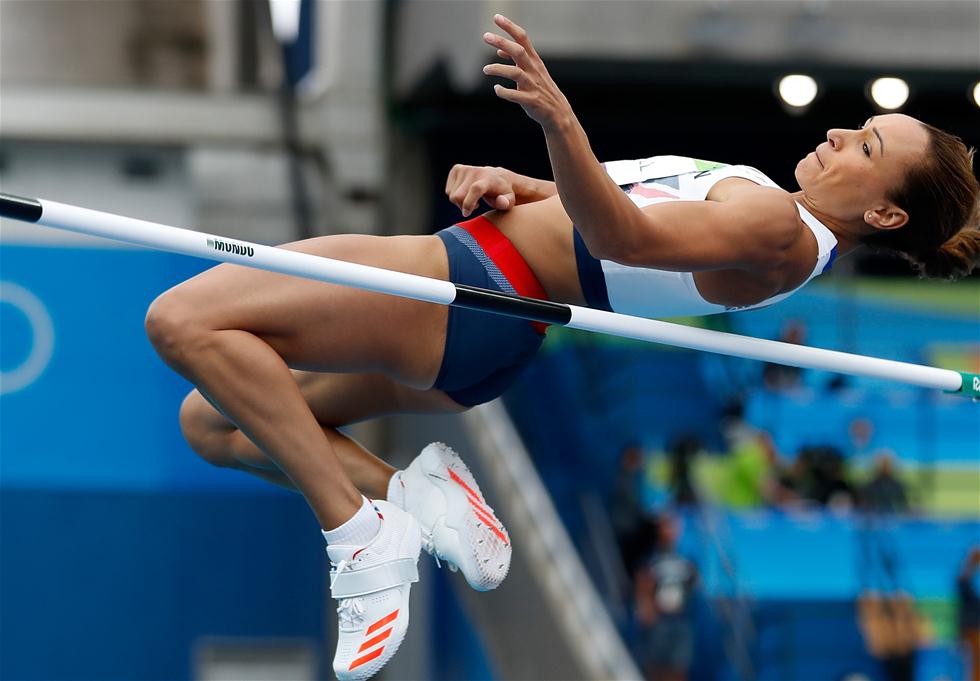 8月12日,英国选手杰西卡·恩尼斯在女子七项全能跳高比赛中。当日,2016年里约奥运会田径赛事在巴西里约热内卢奥林匹克体育场开始首个比赛日的角逐。
