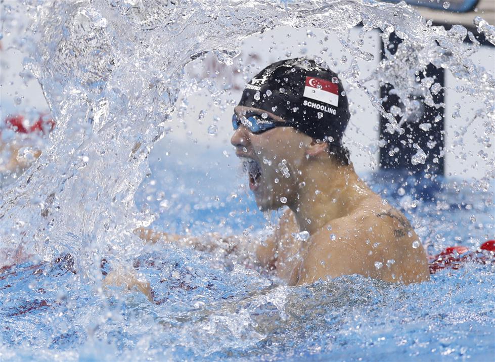 8月12日,斯库林夺冠后庆祝。 当日,在2016年里约奥运会游泳比赛男子100米蝶泳决赛中,新加坡选手斯库林以50秒39的成绩夺冠。